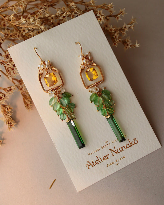 [Plants and flowers waiting for spring] Citrine long earrings