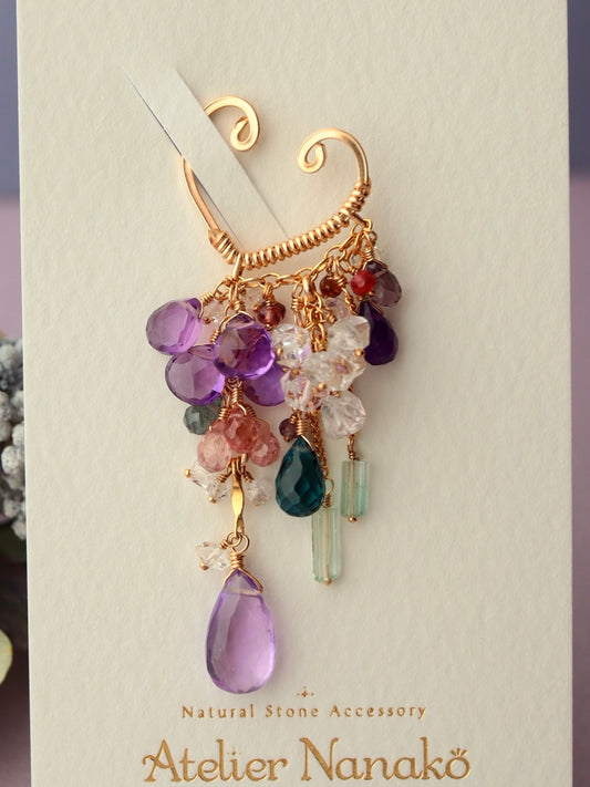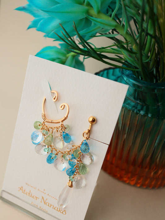 【Pre-order sale】[3WAY ear cuff] Tanzanite and lemon quartz ear cuff (pierce/earring integrated)