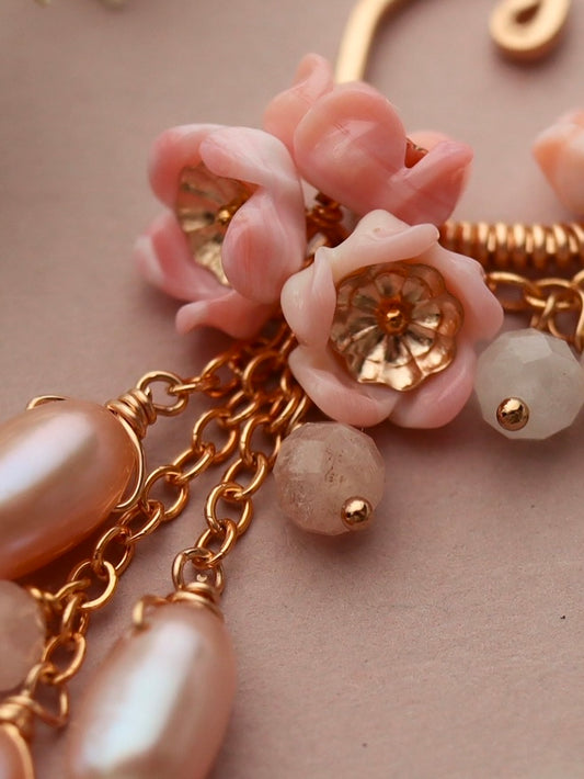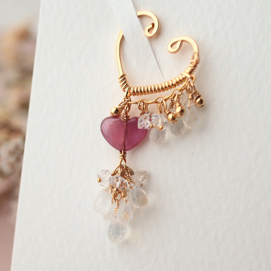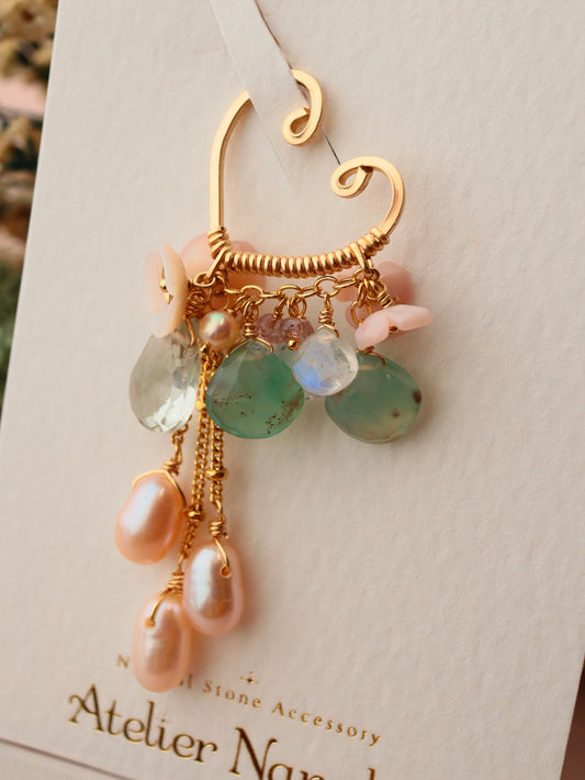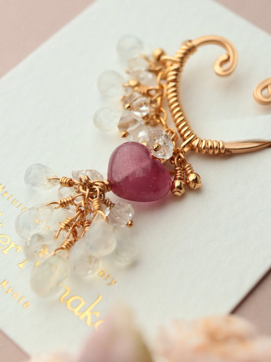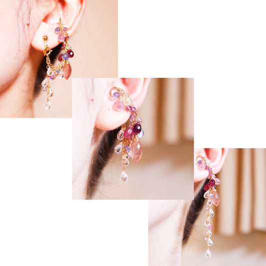 【Pre-order sale】[3WAY ear cuff] Rose quartz and morganite ear cuff (pierce/earring integrated)