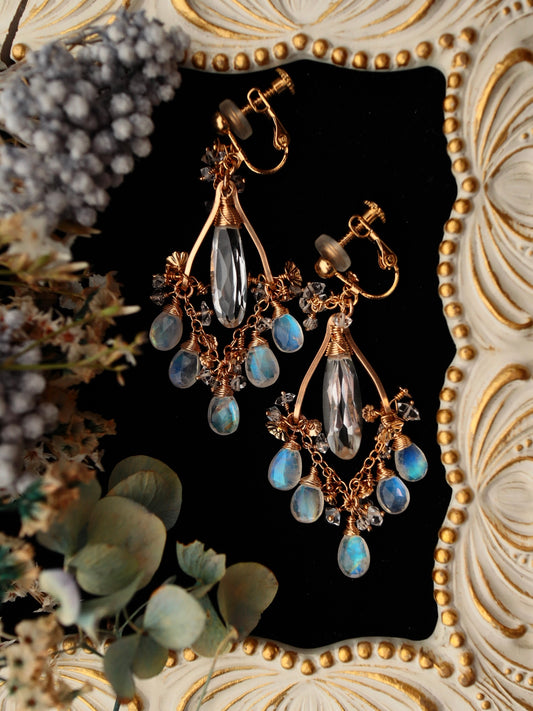 (pale spinel)[The Lady with the Black Eyepatch] Black opal and deep blue kyanite chandelier earrings
