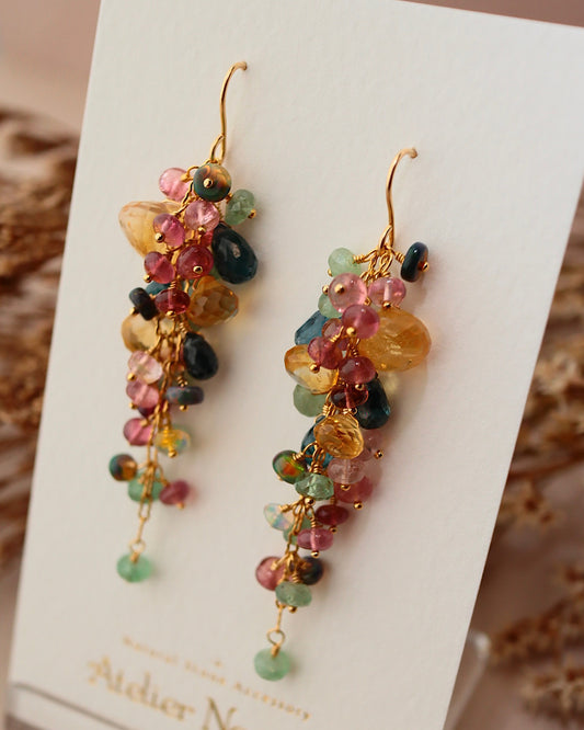 [Plants and flowers waiting for spring] Citrine and pink tourmaline chandelier earrings