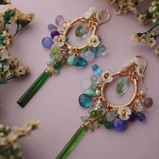 [One of a kind] Blue and green chandelier earrings