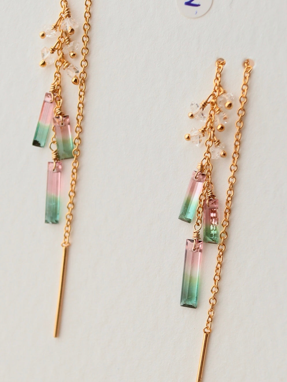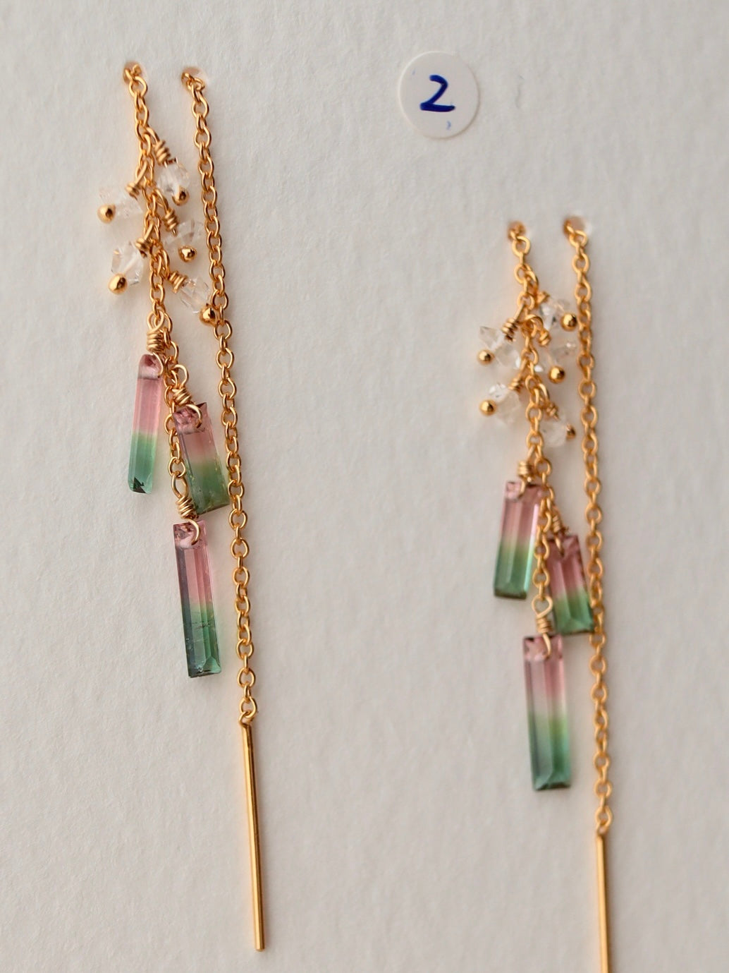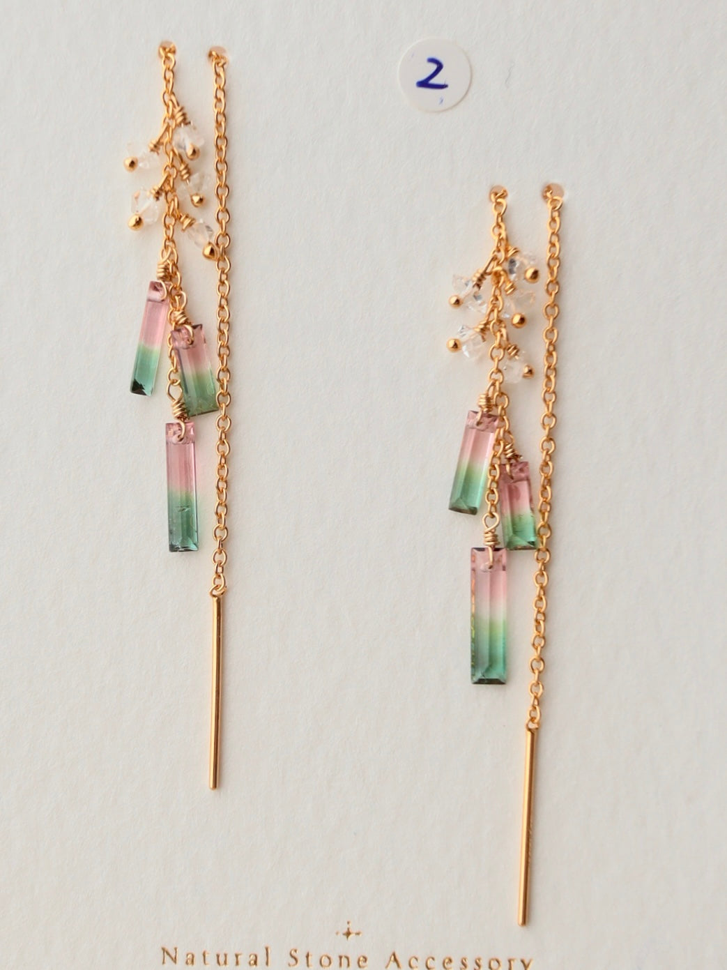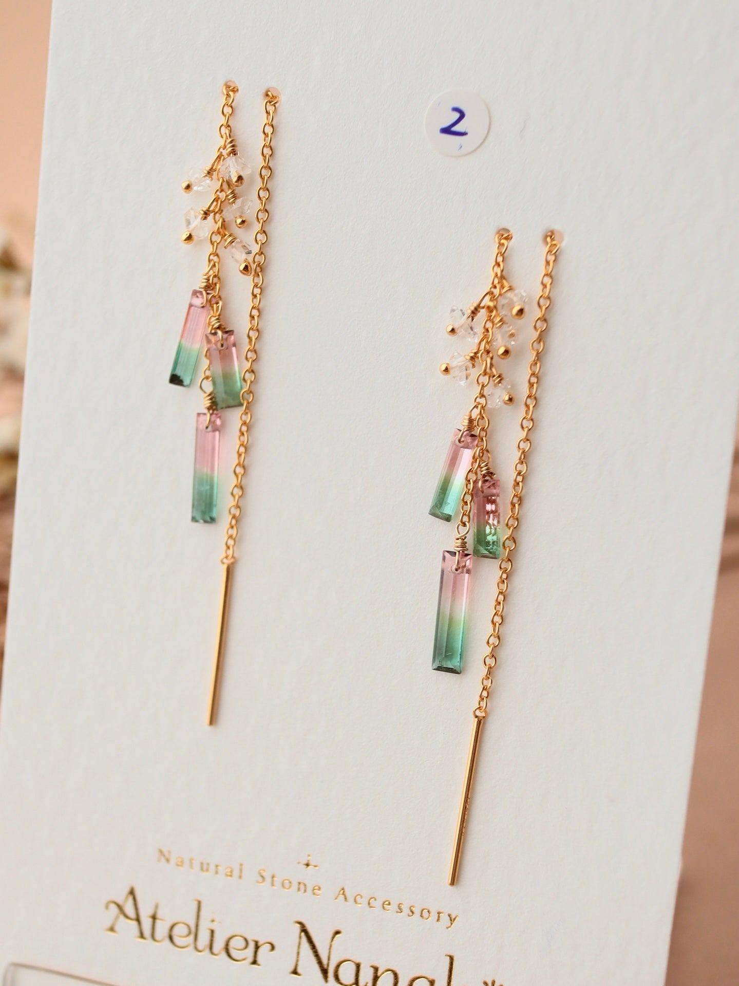 [3-piece type] (2) Watermelon tourmaline American earrings