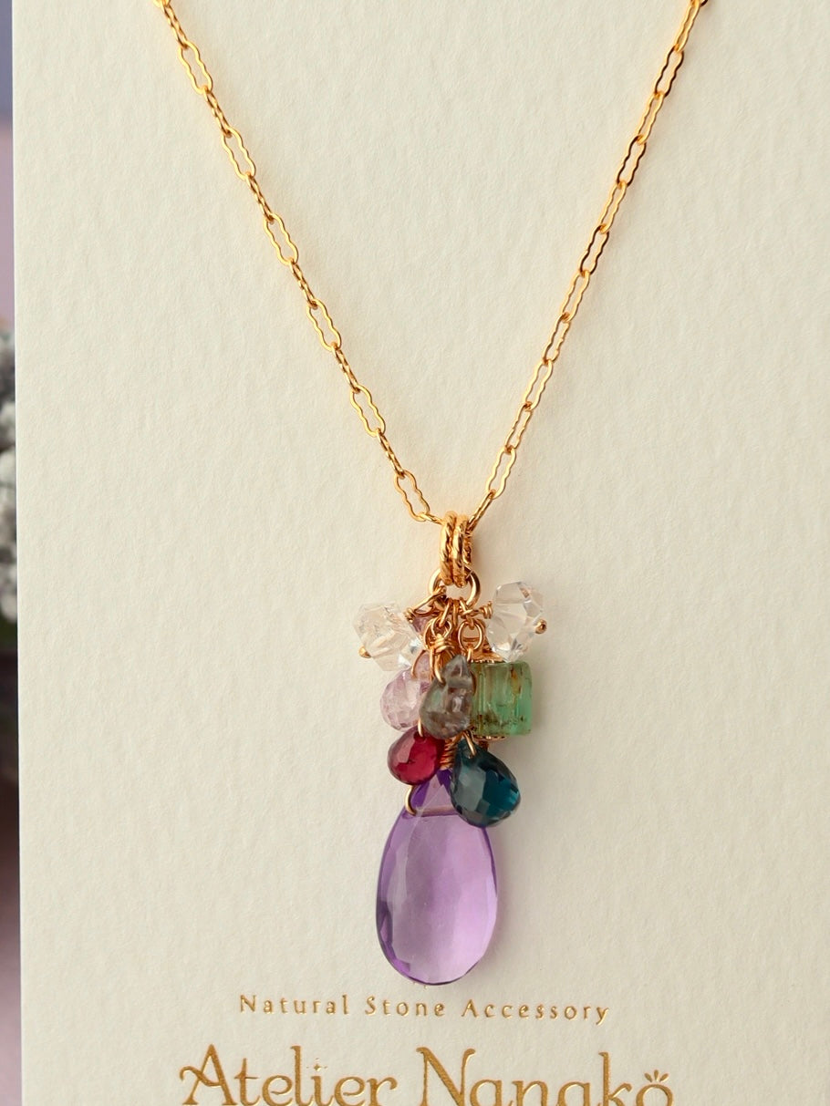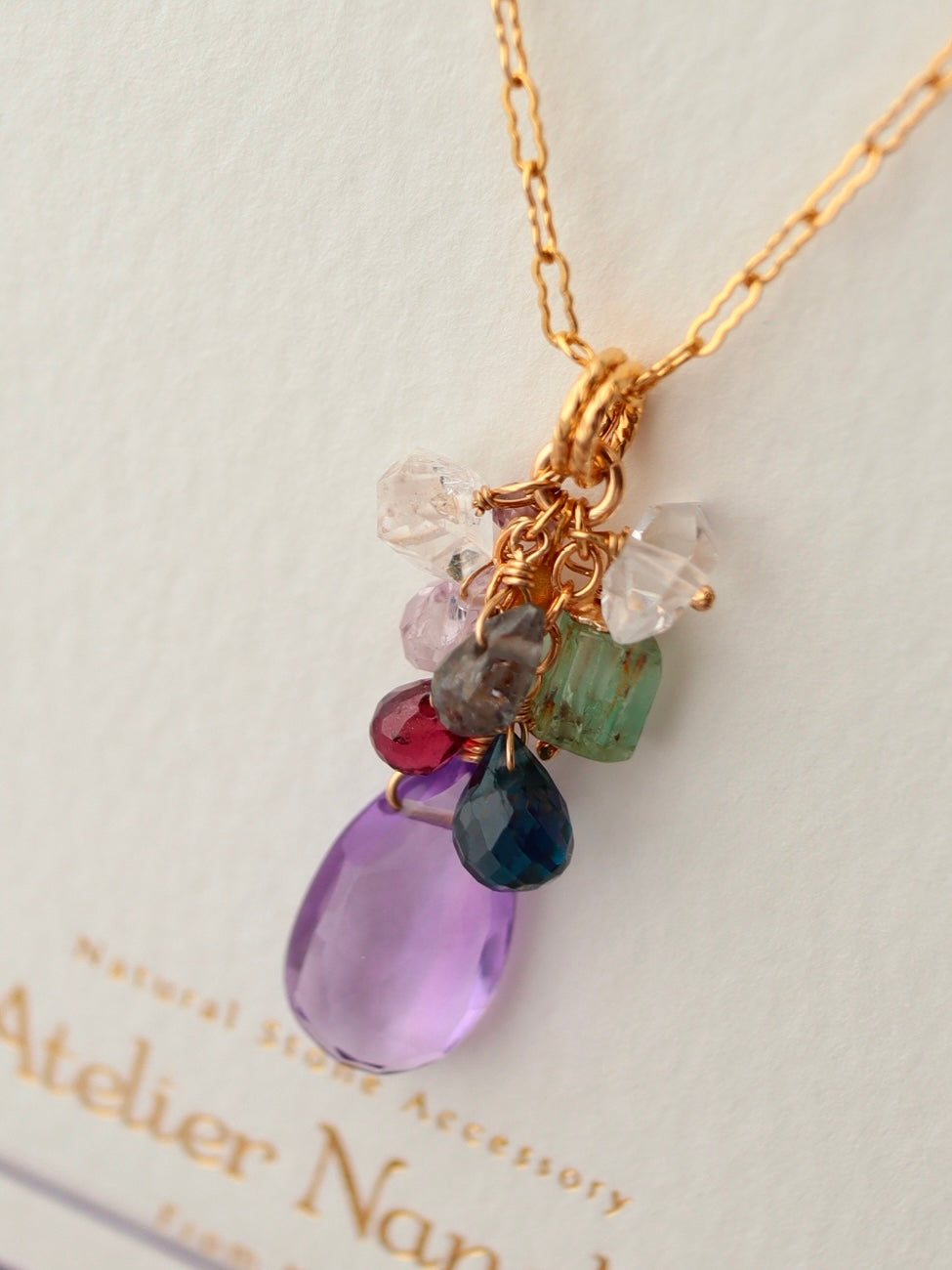 Amethyst, emerald, London blue topaz, spinel, double point quartz
