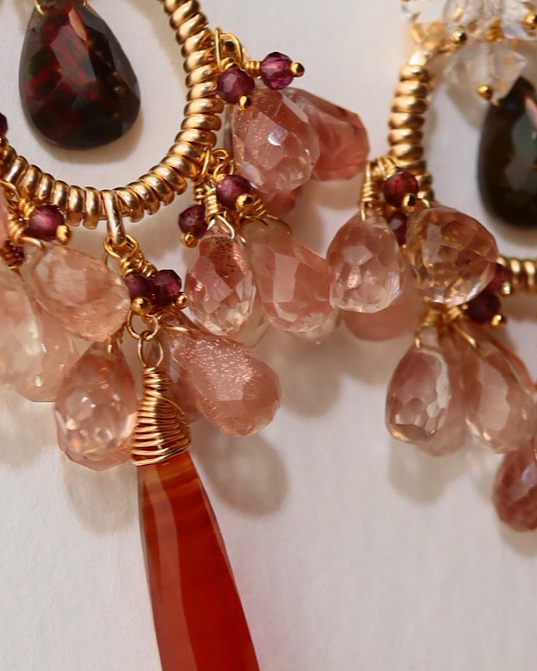 Black opal, sardonyx, Oregon sunstone, garnet, double-point quartz