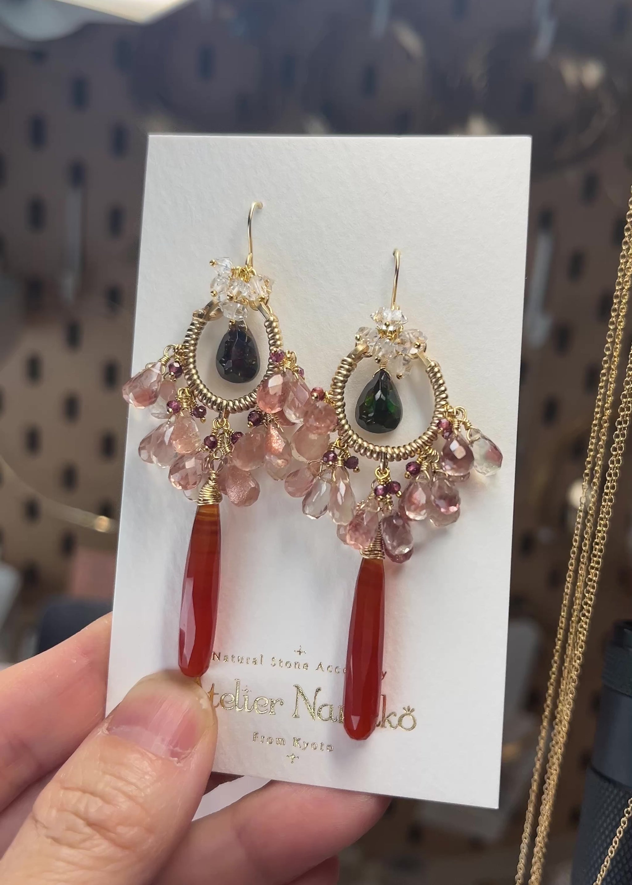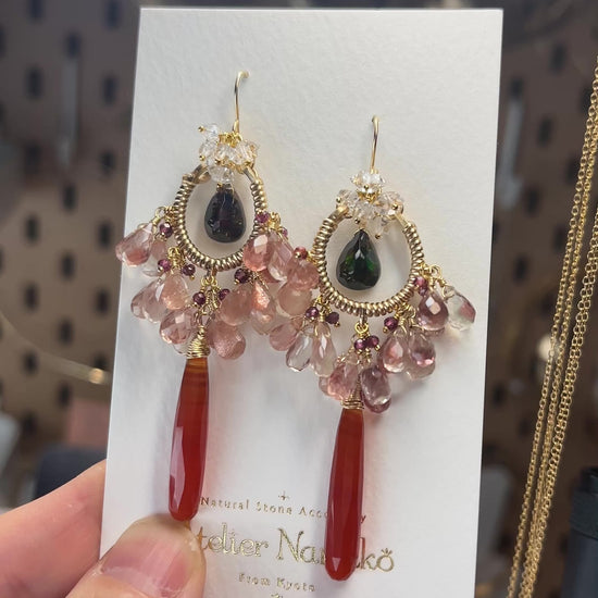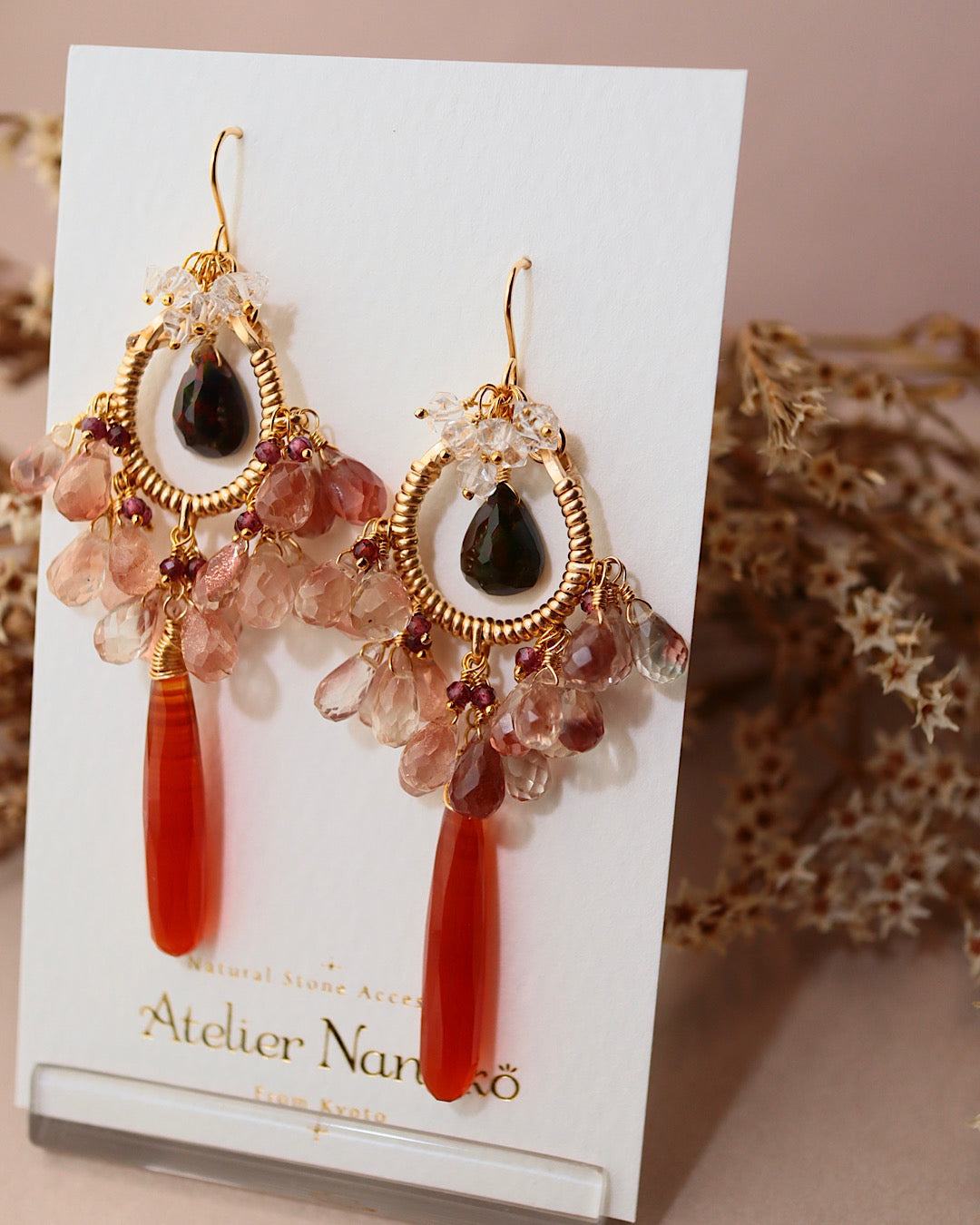 ②【Between Night and Morning】 Black Opal and Sardonyx Chandelier Earrings