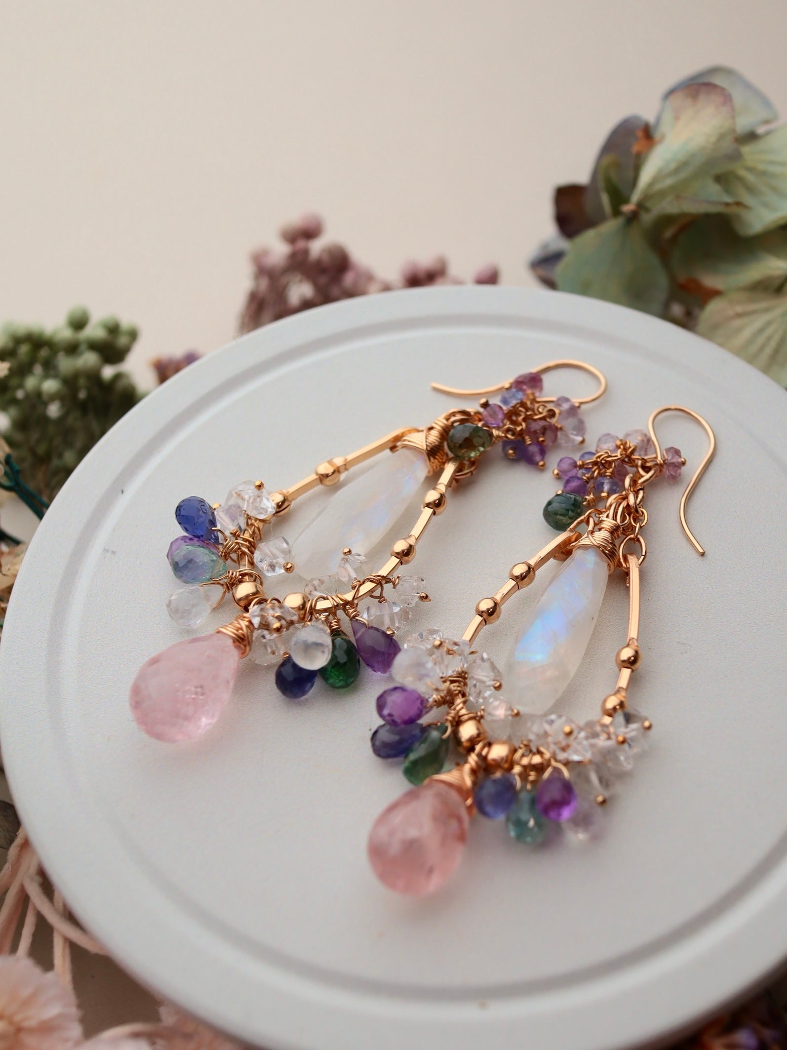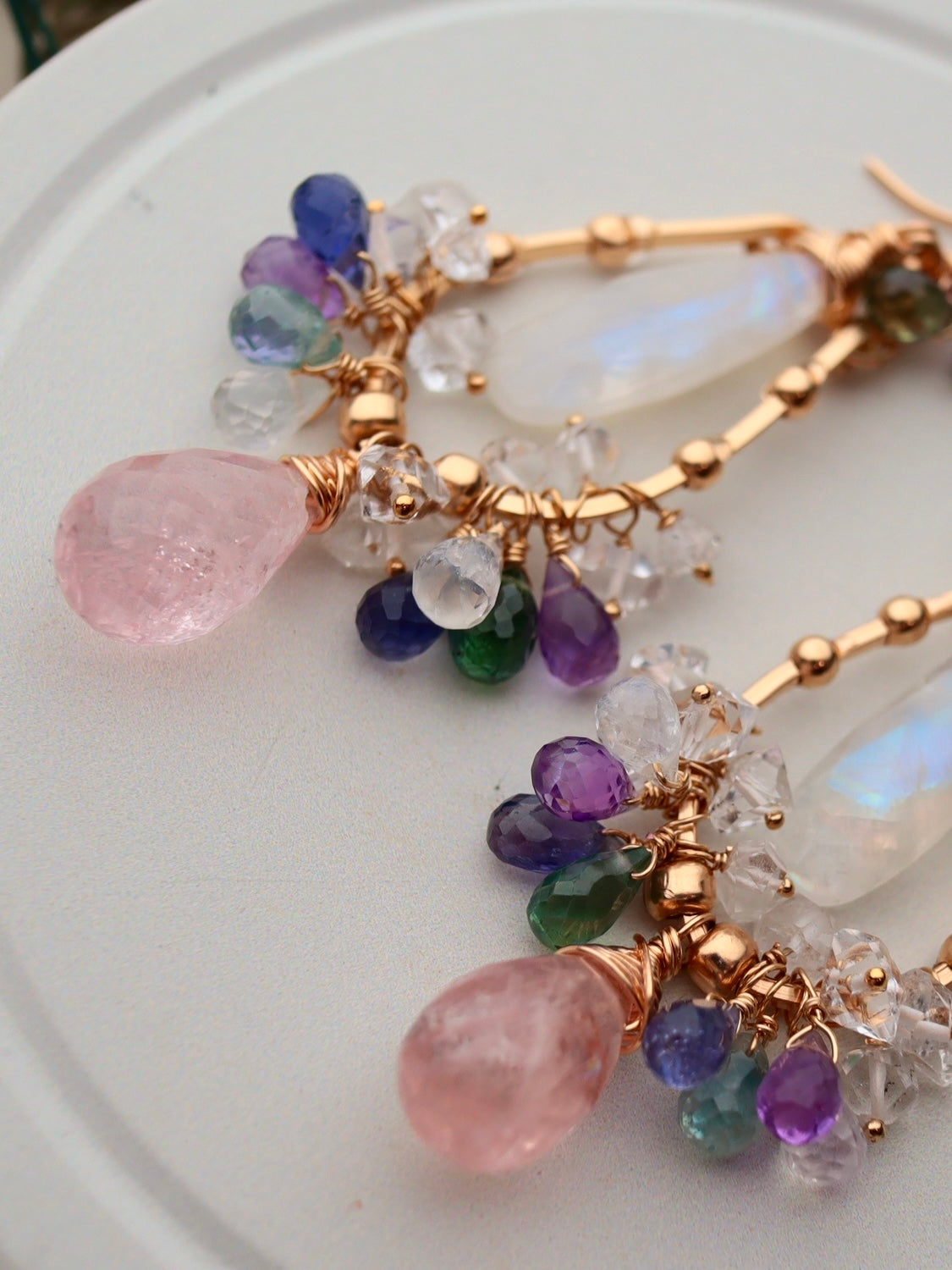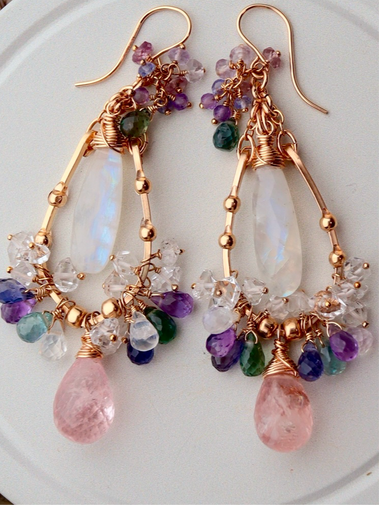 Morganite, sapphire (pink, green), iolite, moonstone, amethyst, double point crystal, etc.