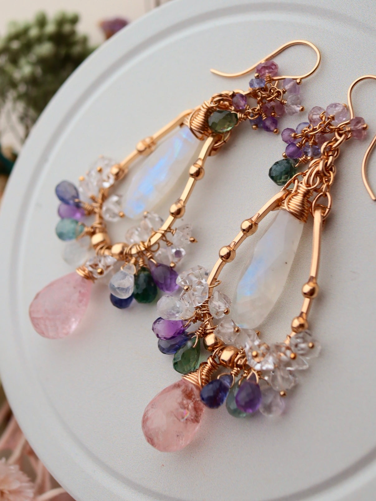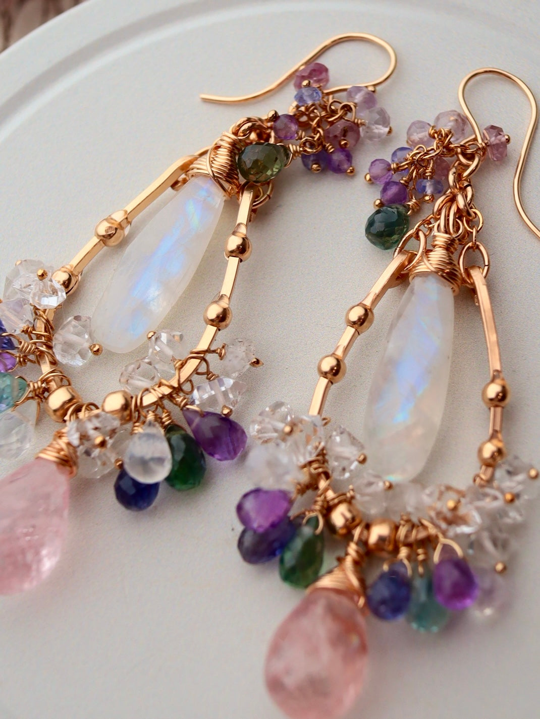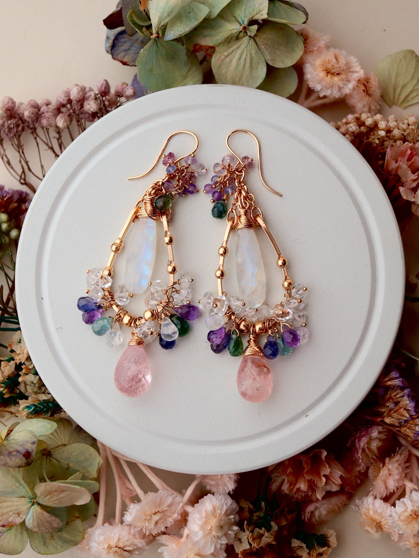 Morganite, sapphire (pink, green), iolite, moonstone, amethyst, double point crystal, etc.