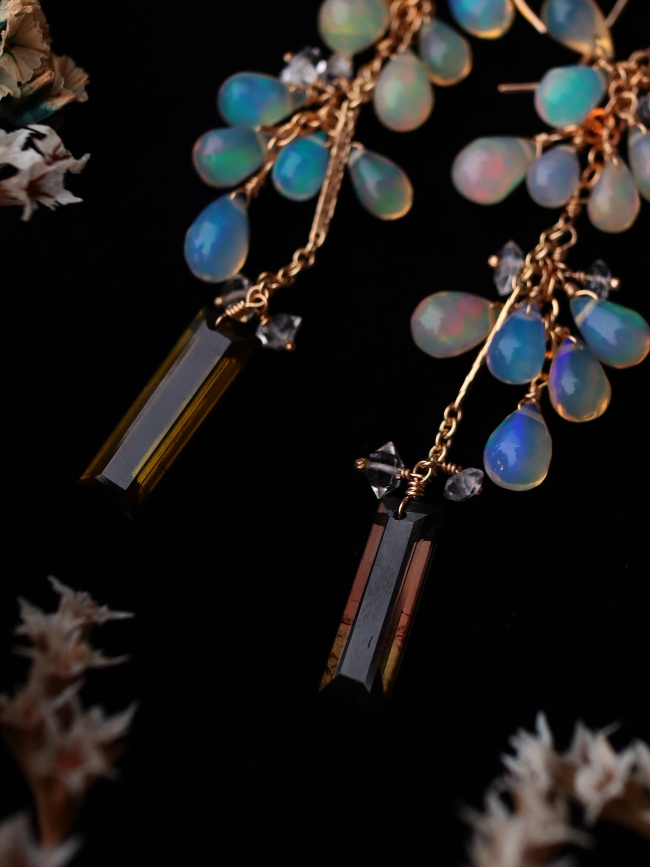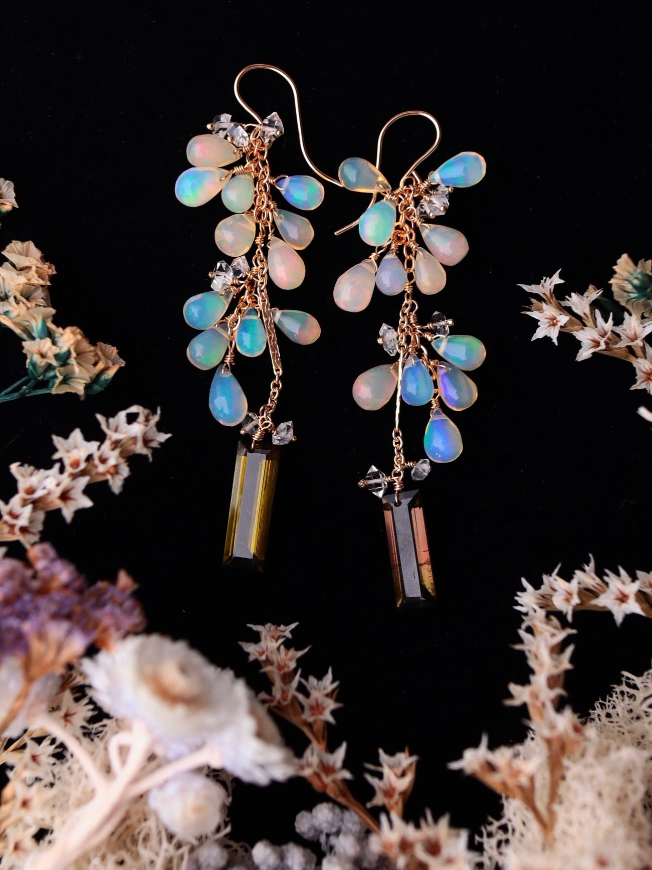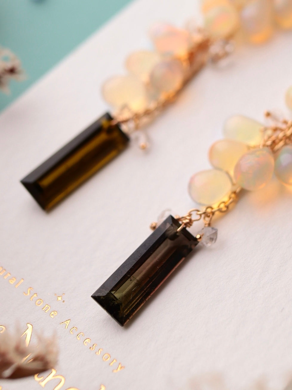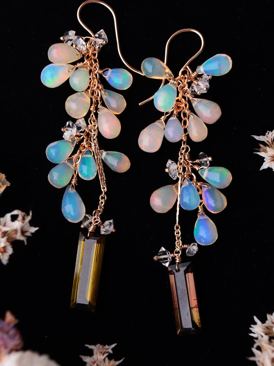 Opal and tourmaline earrings