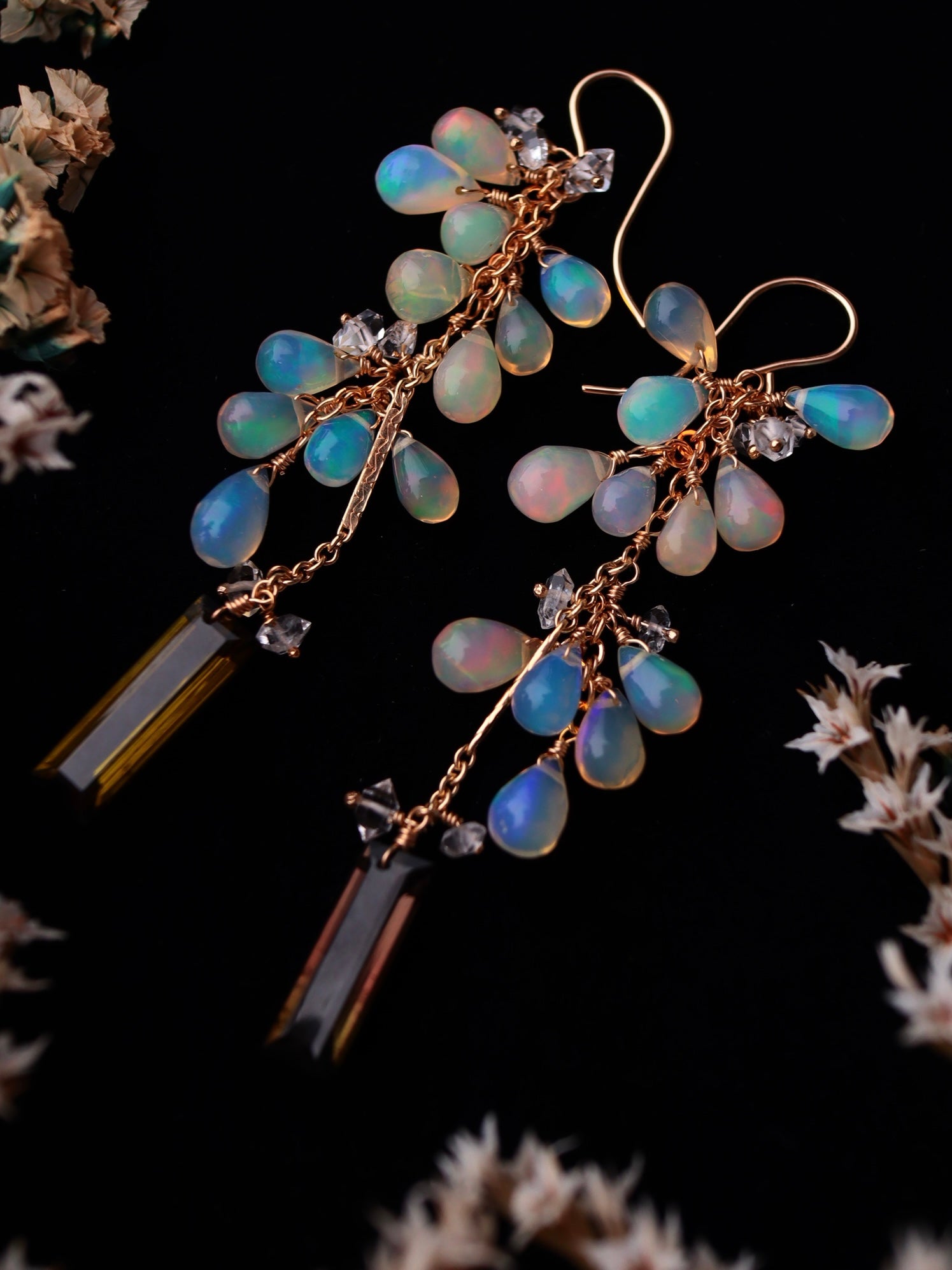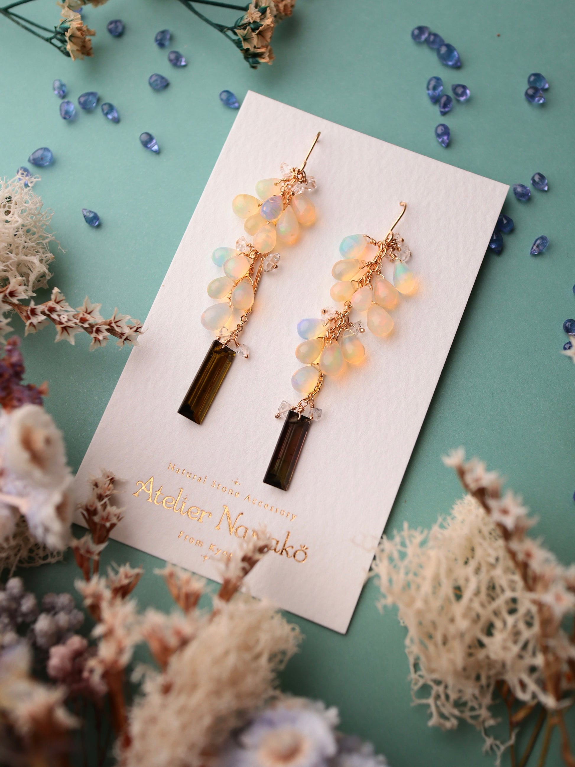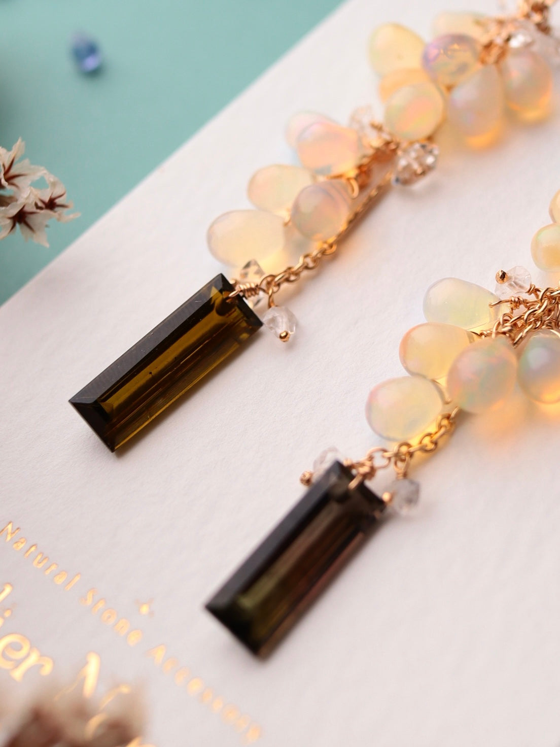 Opal and tourmaline earrings