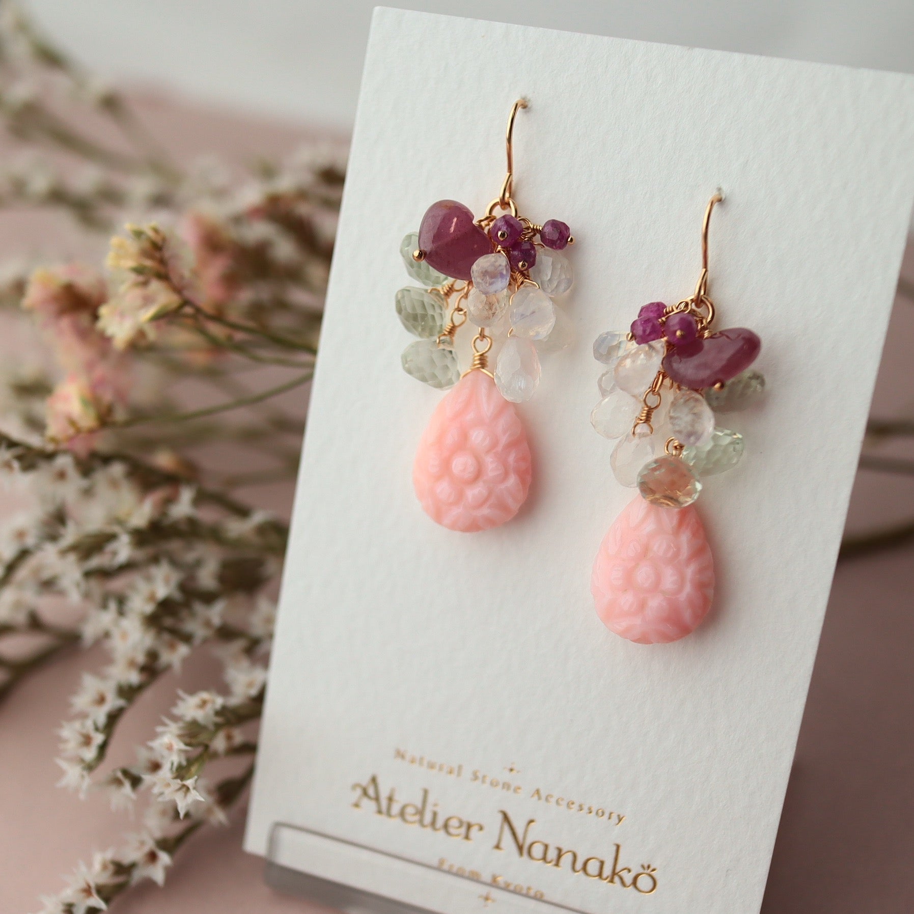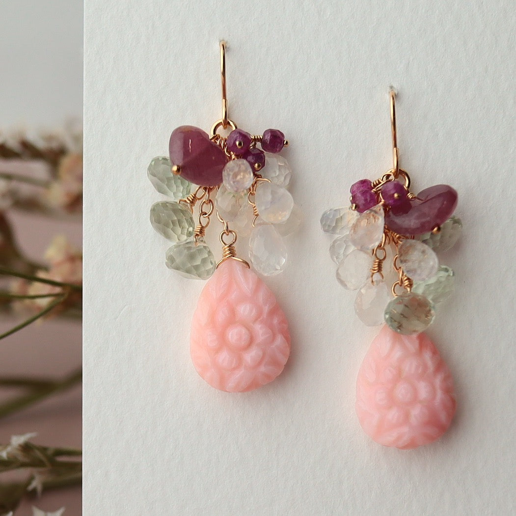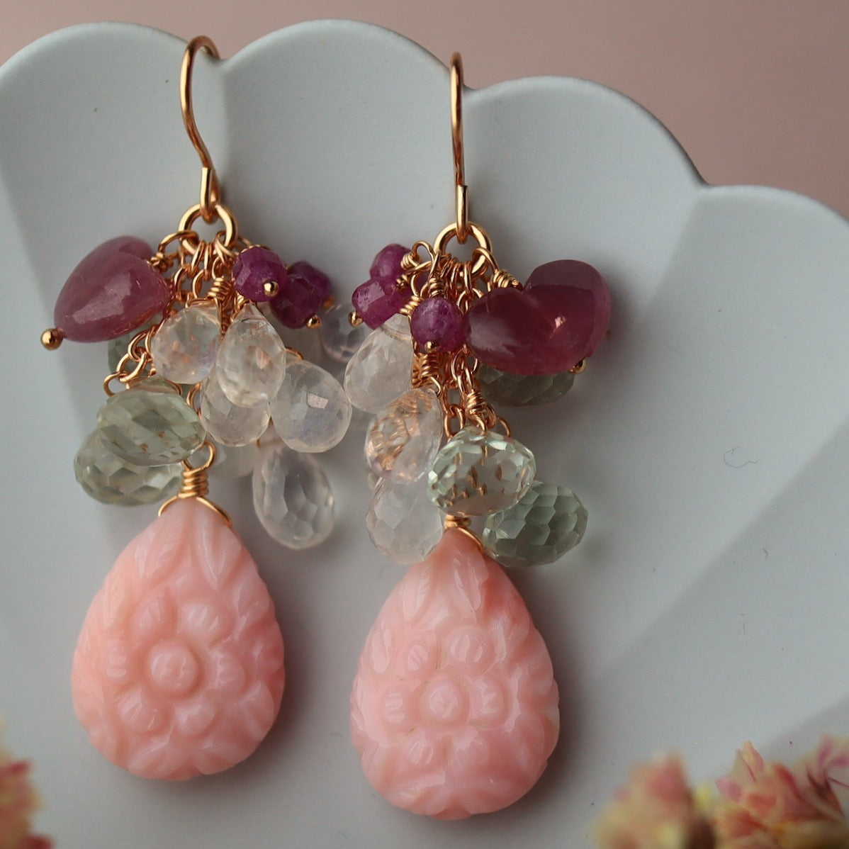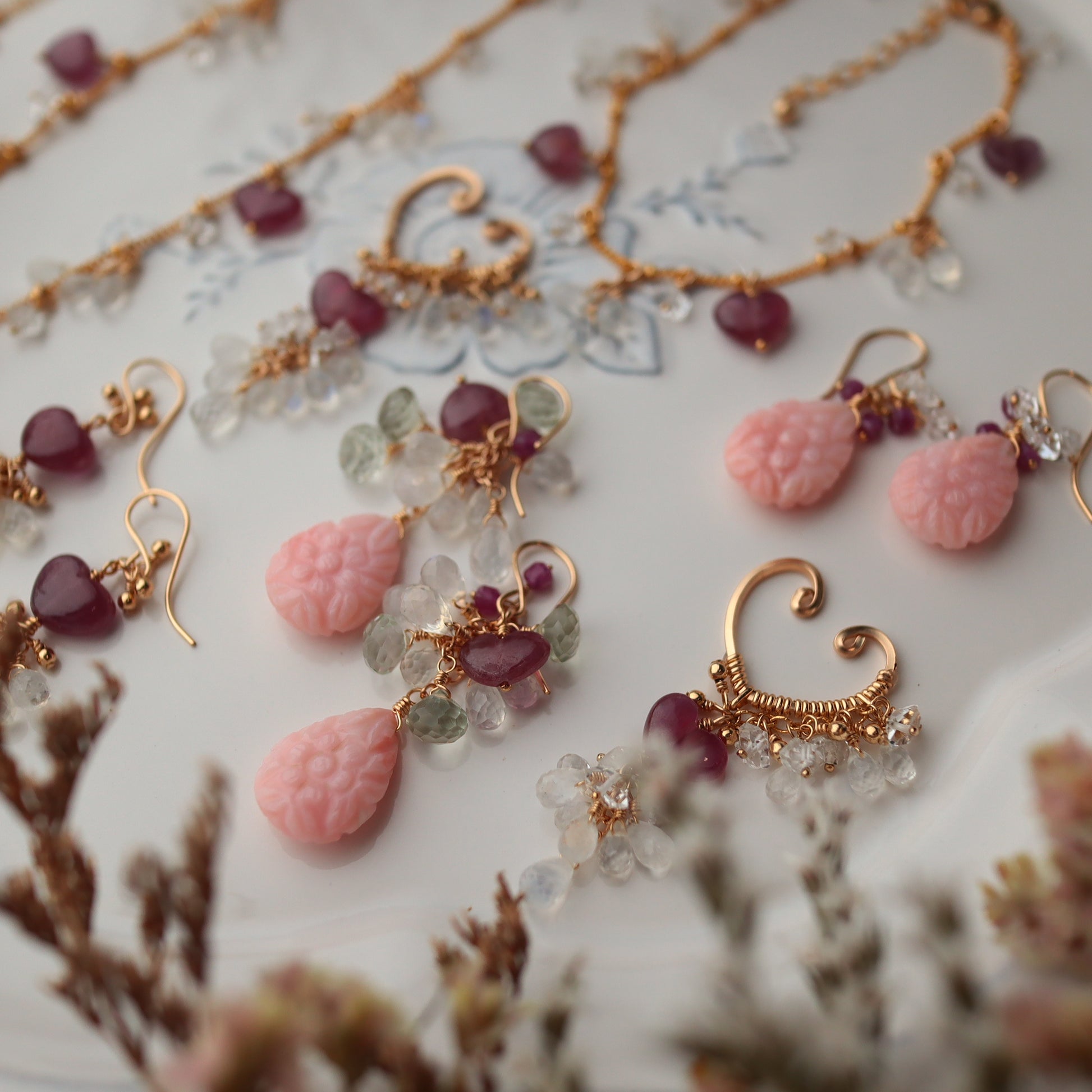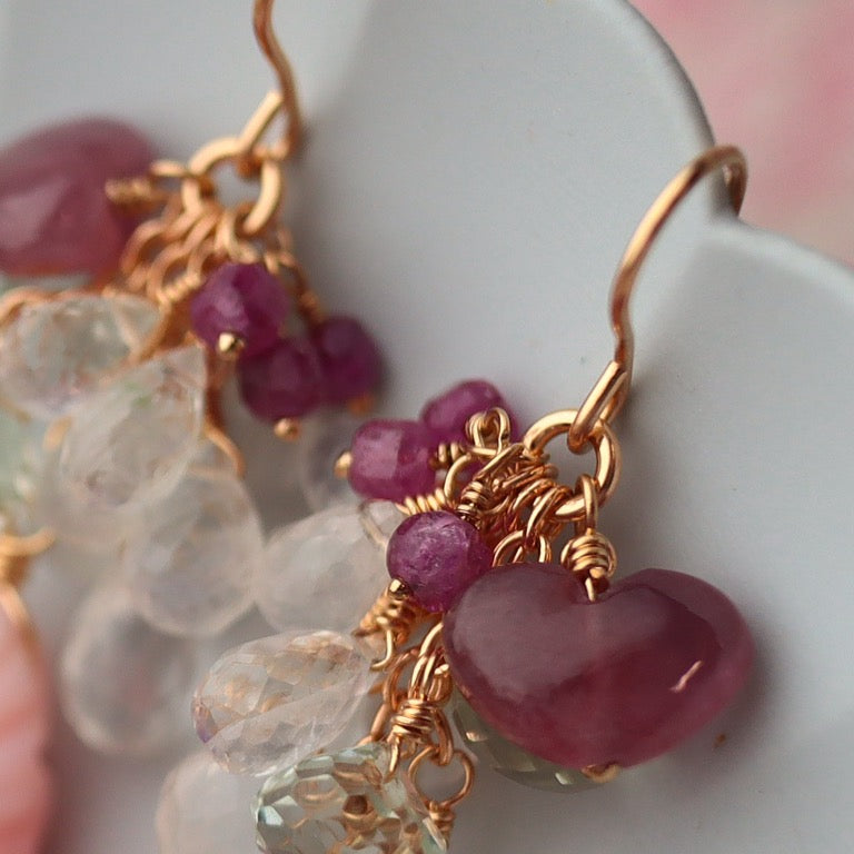Pink opal, pink sapphire, moonstone, green amethyst, ruby
