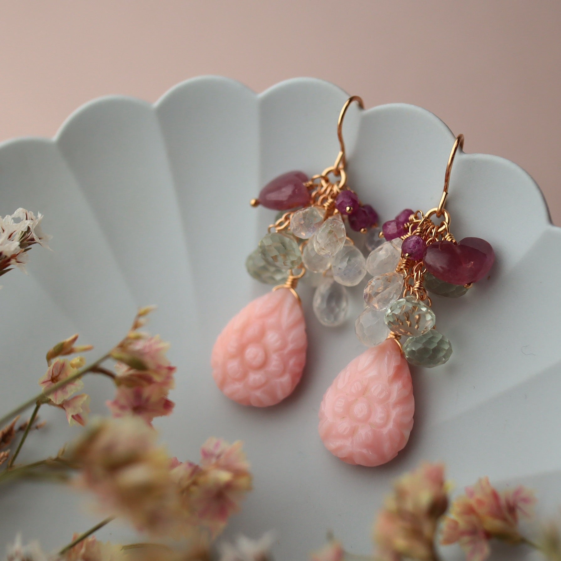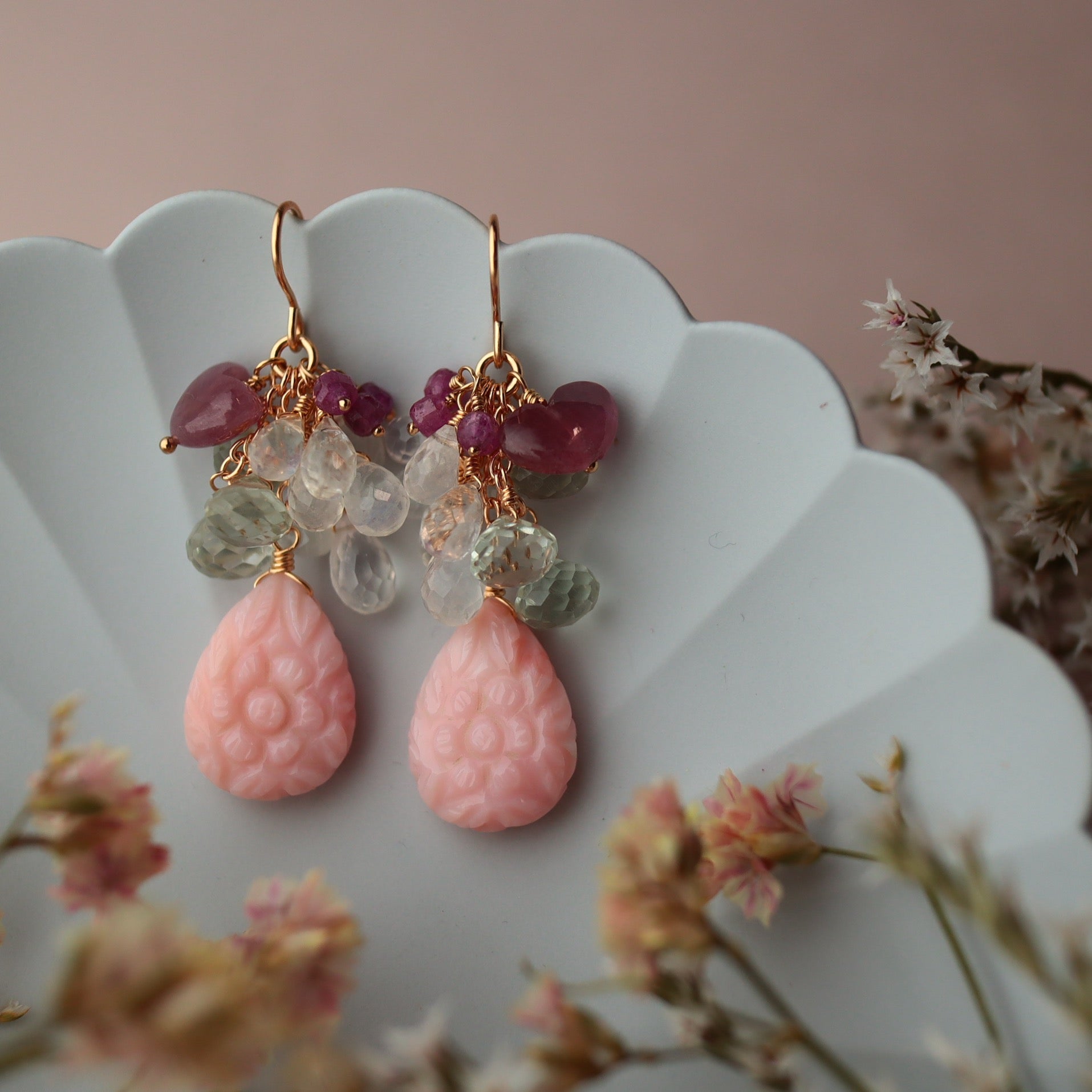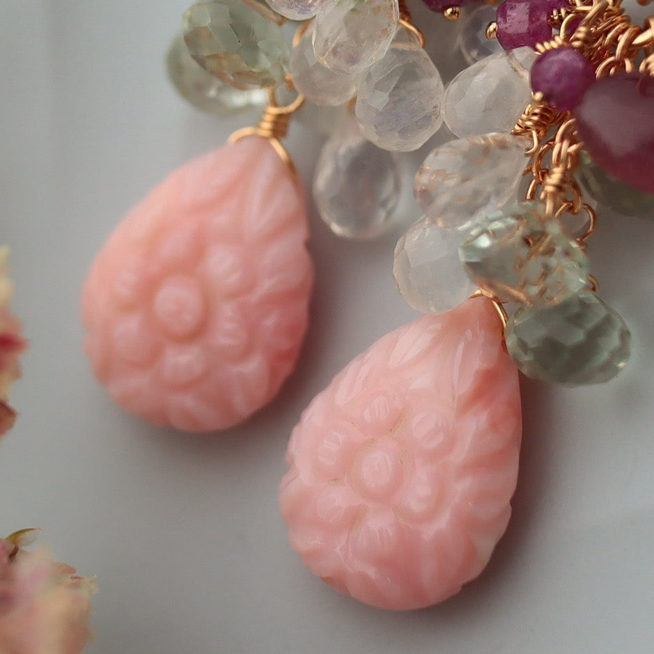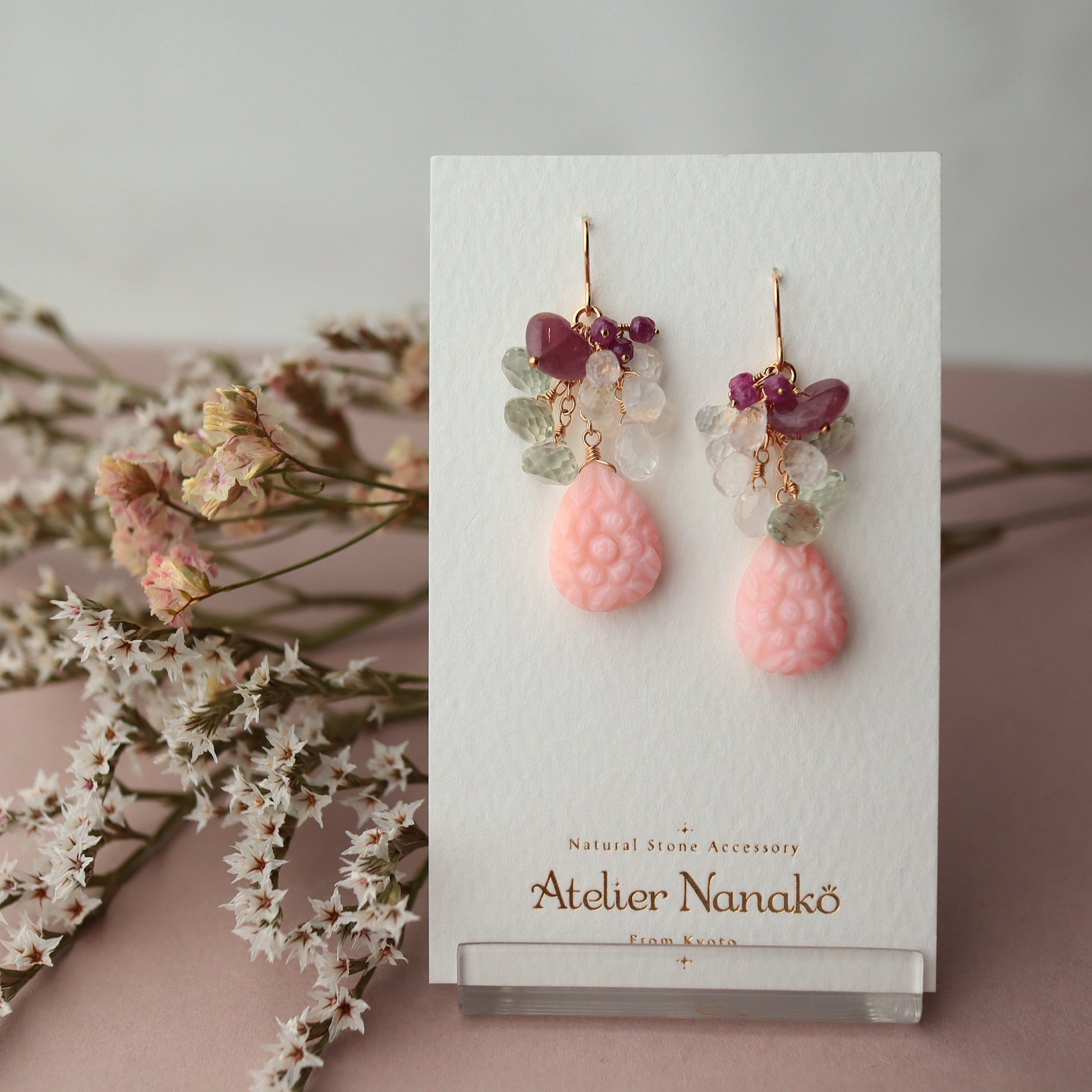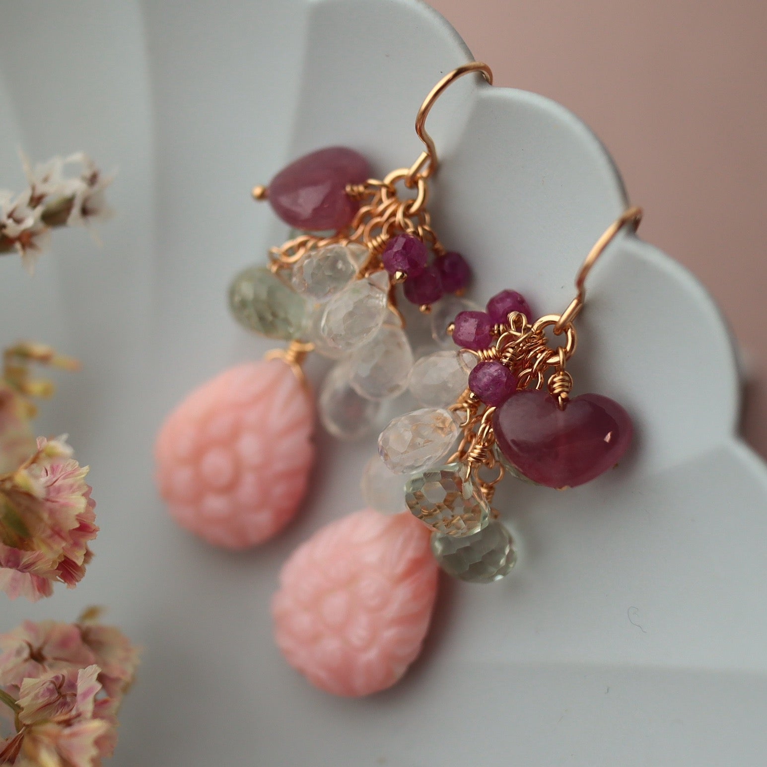 Pink opal, pink sapphire, moonstone, green amethyst, ruby