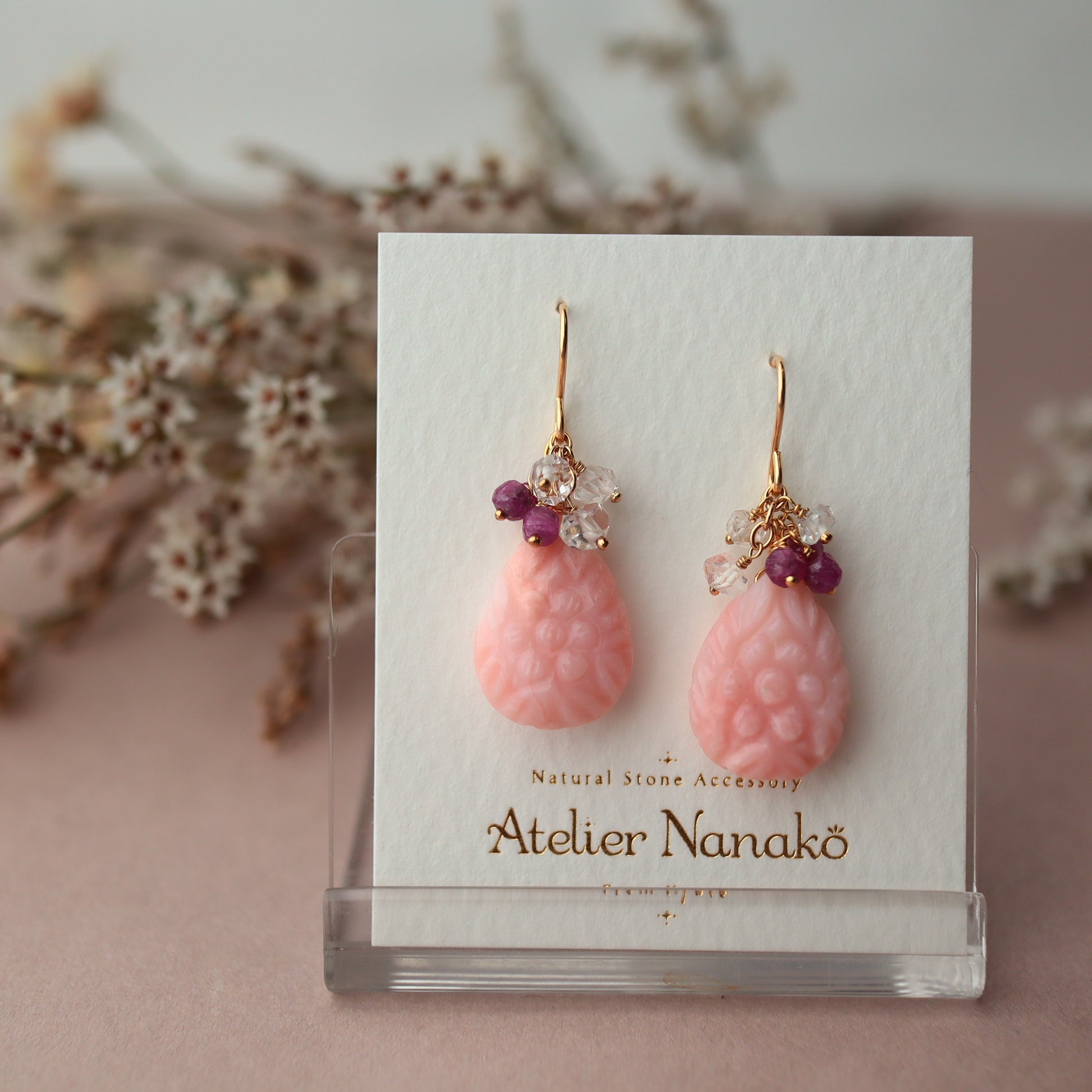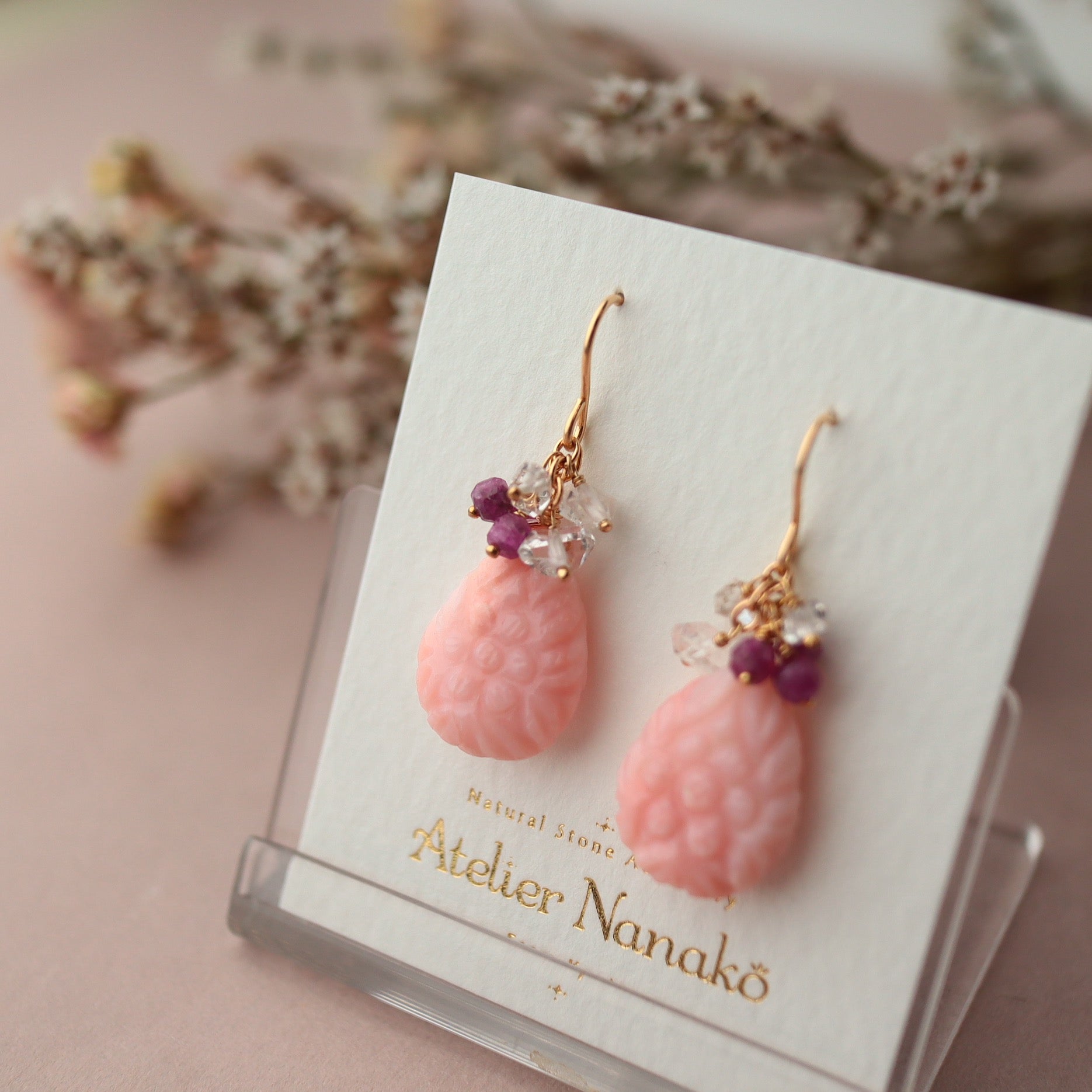 Pink opal earrings