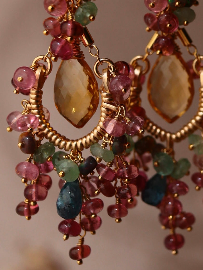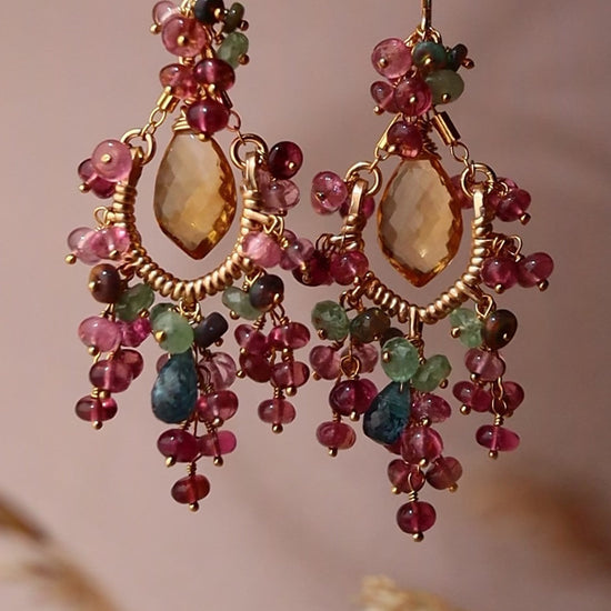 [Plants and flowers waiting for spring] Citrine and pink tourmaline chandelier earrings