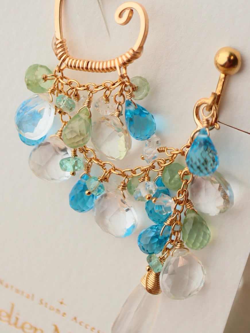 Swiss blue topaz, quartz crystal, prehnite, double point quartz crystal, green kyanite, apatite
