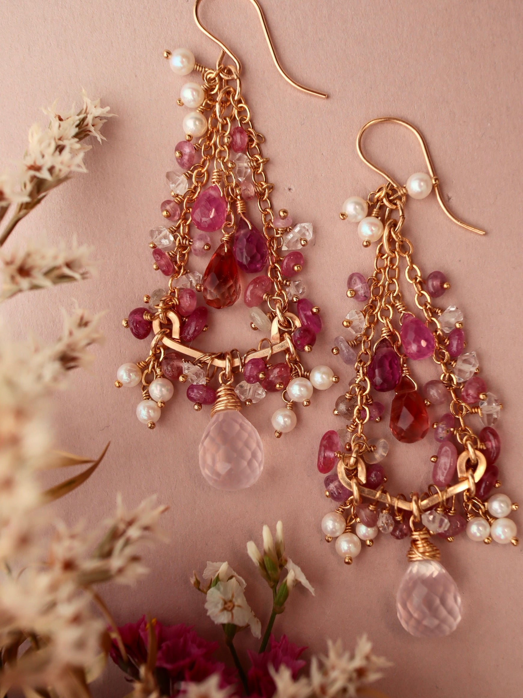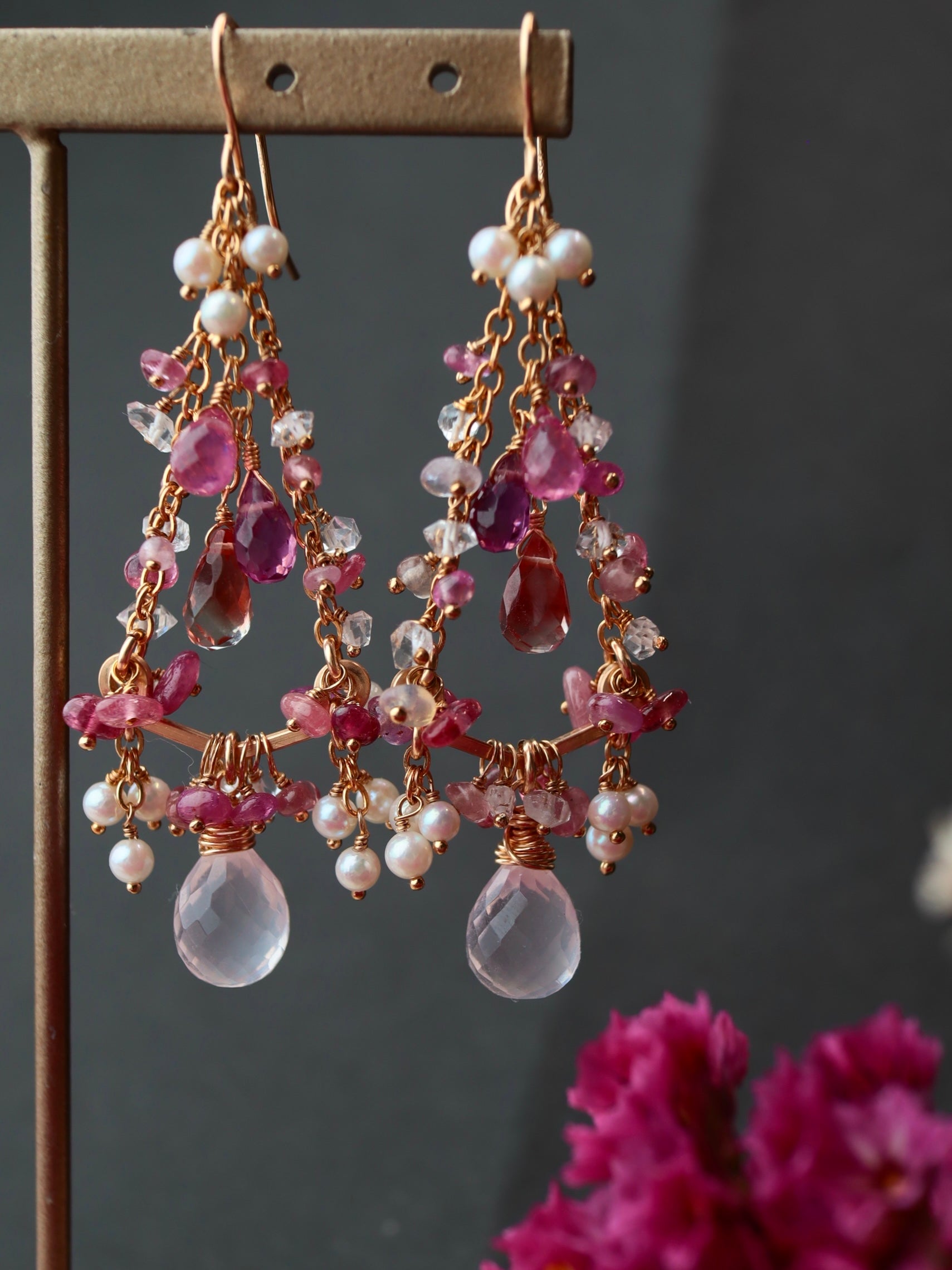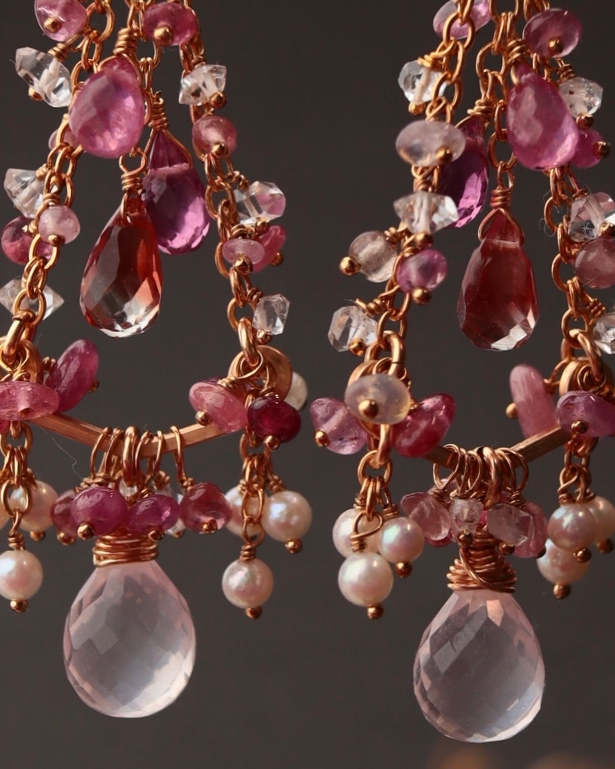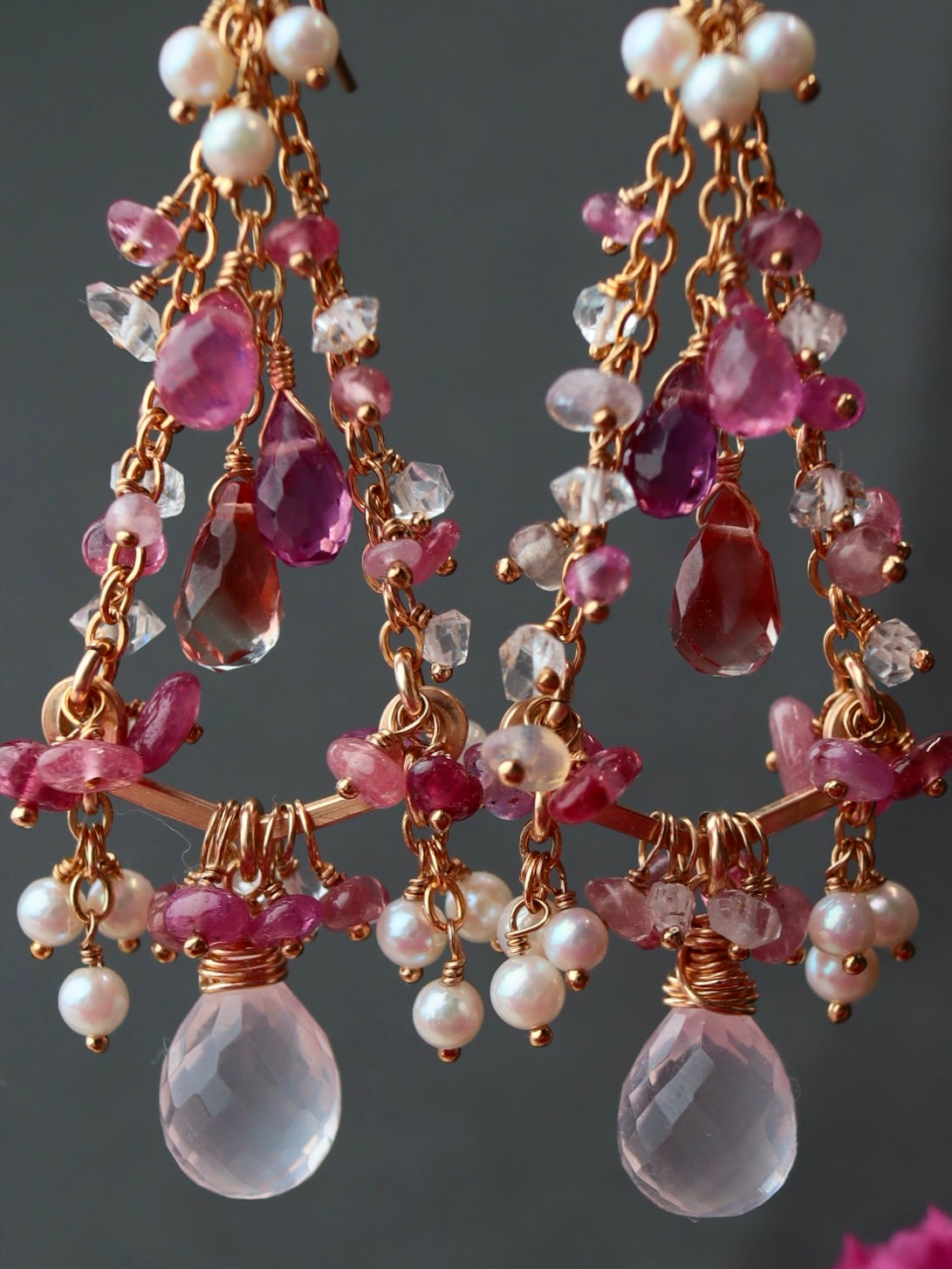 Rose quartz, Oregon sunstone, pink sapphire, rhodolite garnet, freshwater pearl