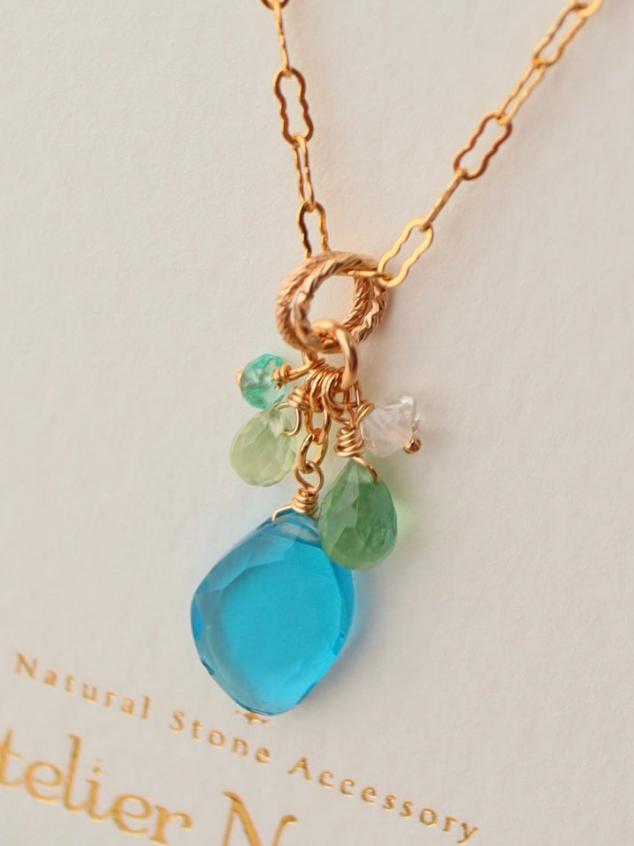 Swiss blue topaz, green kyanite, prehnite, double-point quartz, apatite